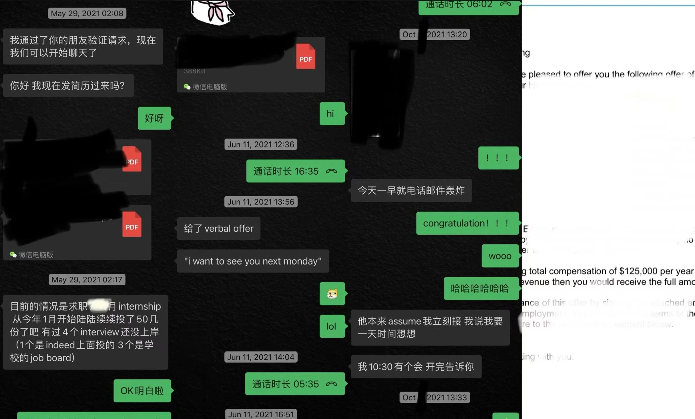 在校生 10天拿实习Offer,全职拿到125k Offer (辅导实习+全职)